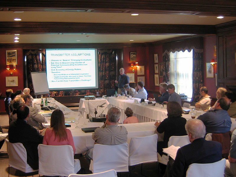 To put the lack of signals in perspective, Murray and colleague Bruce Betts brought together most of the field's top specialists for the day-long brainstorming session. Far from being discouraged, the workshop's attendees frequently reminded one another that their work has just begun. "We haven't done very much," admitted Dan Werthimer (University of California, Berkeley), who has spearheaded the wildly successful SETI@home grassroots effort. "Earthlings are just getting into the game — we can't rule out hardly anything."