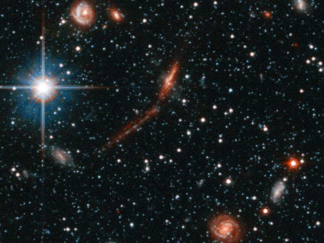 Brown and his colleagues chose to point at a spot 1° southeast of M31, the Great Andromeda Galaxy, in order to get a census of faint stars populating M31's outer halo. The full ACS image is about 3.1 arcminutes square, the size of a sand grain held at arm's length against the sky. The ACS magnifies this small field into a vast panorama of some 300,000 stars and thousands of faint background galaxies. At M31's distance of 2.5 million light-years, the faintest of the stars are slightly less luminous than our Sun. A large fraction of the most distant galaxies appear patchy and irregular, testimony to the collisions and mergers in the early universe that built up the familiar galaxies we see closer around us today.